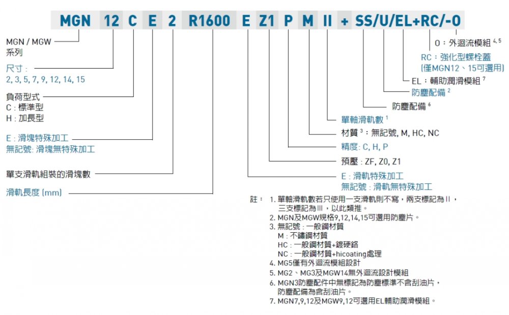 (2) 互换性直线导轨产品型号 单出滑块产品型号