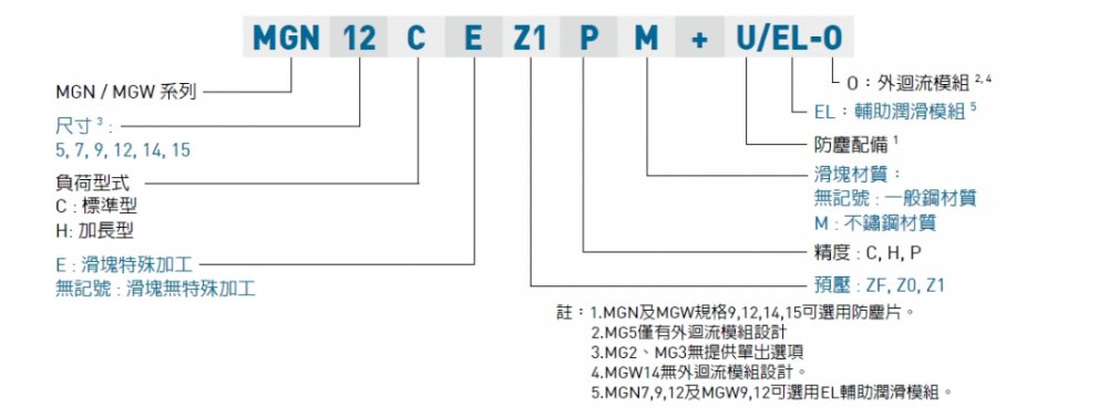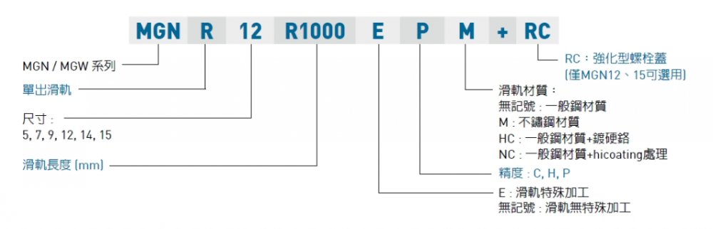 (1) 非互换性直线导轨产品型号